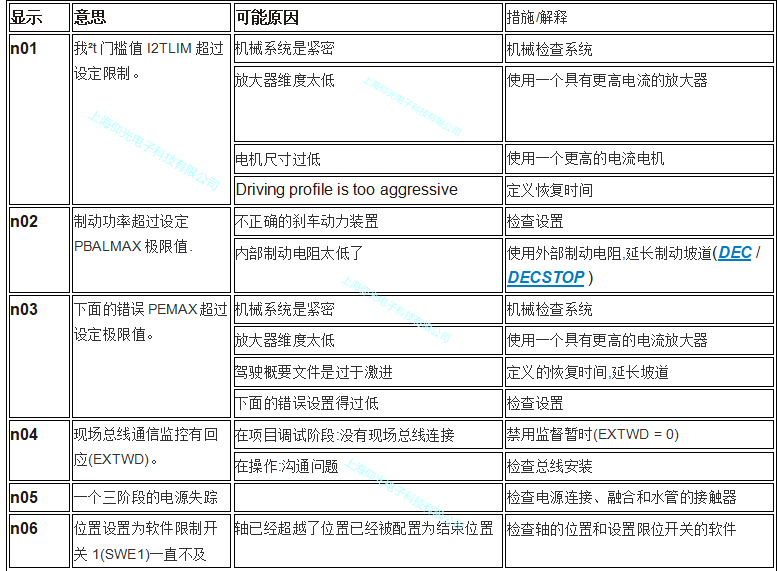 科爾摩根伺服驅(qū)動器常見故障報警代碼:F01 F02 F03 F04 F05 F06 F08 F12 F16 F32