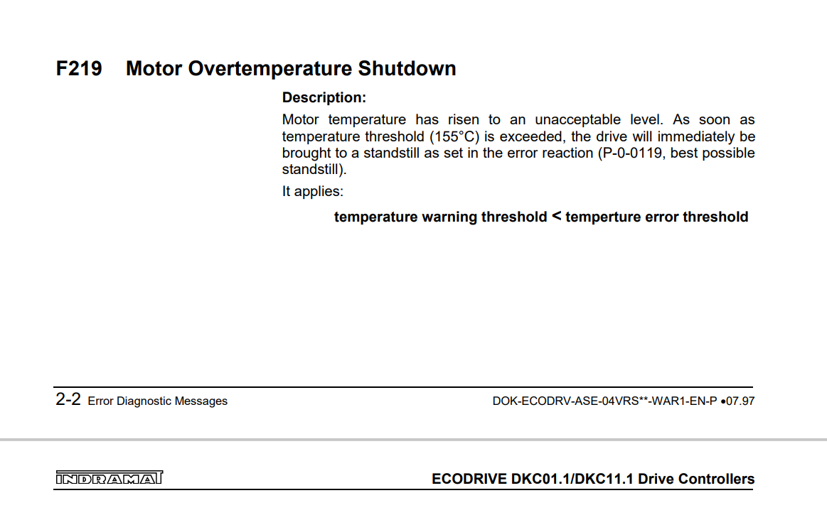 力士樂伺服控制器維修,力士樂DKC伺服控制器報故障F219維修,力士樂DKC伺服控制器報故障電機過熱停機維修,